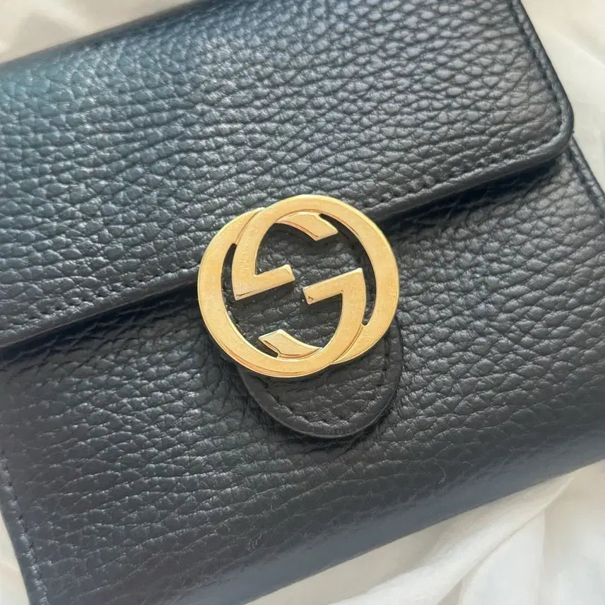 구찌 인터로킹 반지갑 금장 블랙 색상