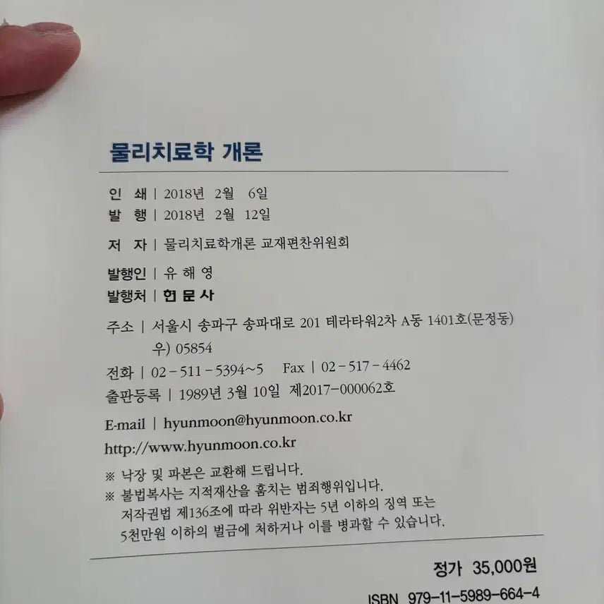 [BUNJANG] Hyunmunsa Introduction to Physical Therapy Textbook / 현문사 물리치료학개론 교재