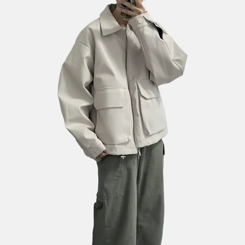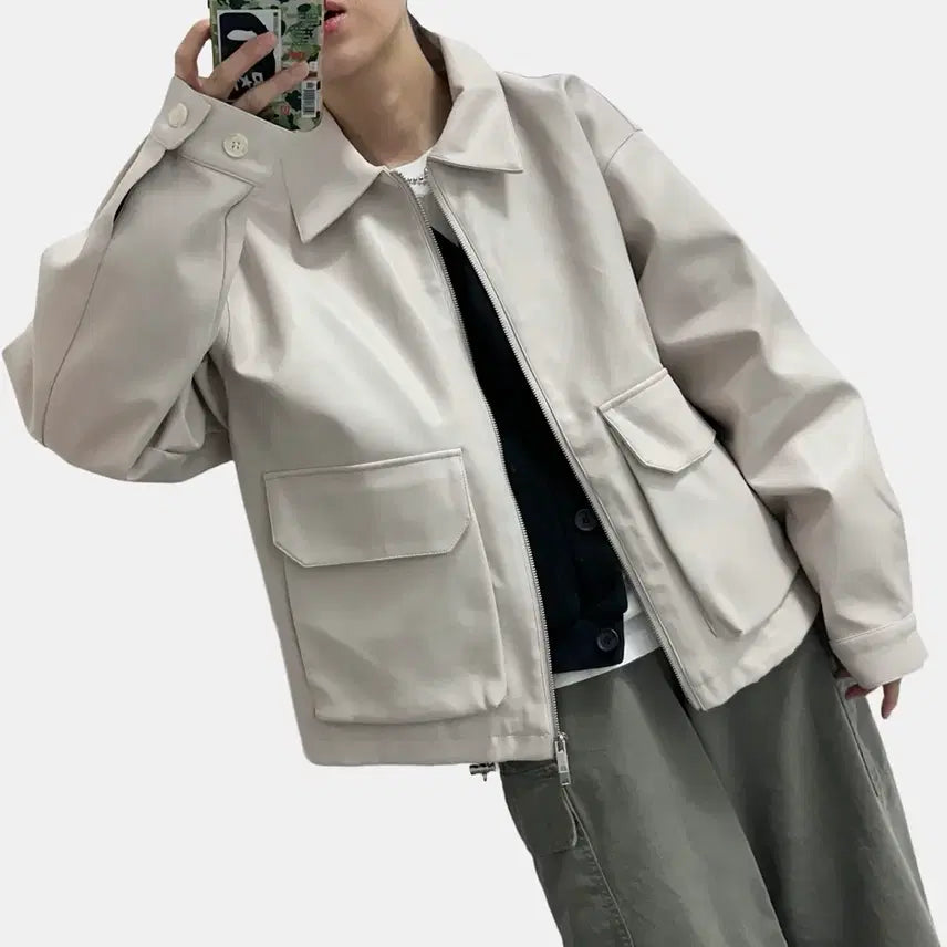 미니멀한 무드의 비건 레더 자켓입니다