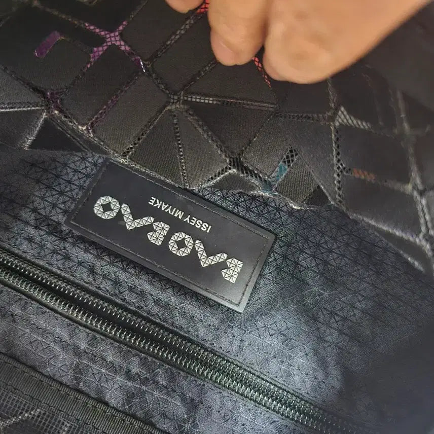 This Issey Miyake Bao Bao tote bag features a striking geometric design in black. Its lightweight construction and ample storage make it ideal for everyday use.
