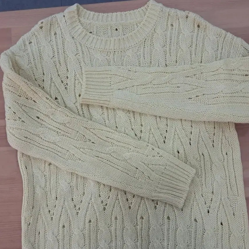 아이보리 색상의 꽈배기 니트 스웨터입니다. 촘촘한 짜임으로 고급스러움을 더했습니다. 지금 날씨에 단독으로 입기 딱 좋아요. 별도 문의 없으시면 바로 안전결제 부탁드려요!
