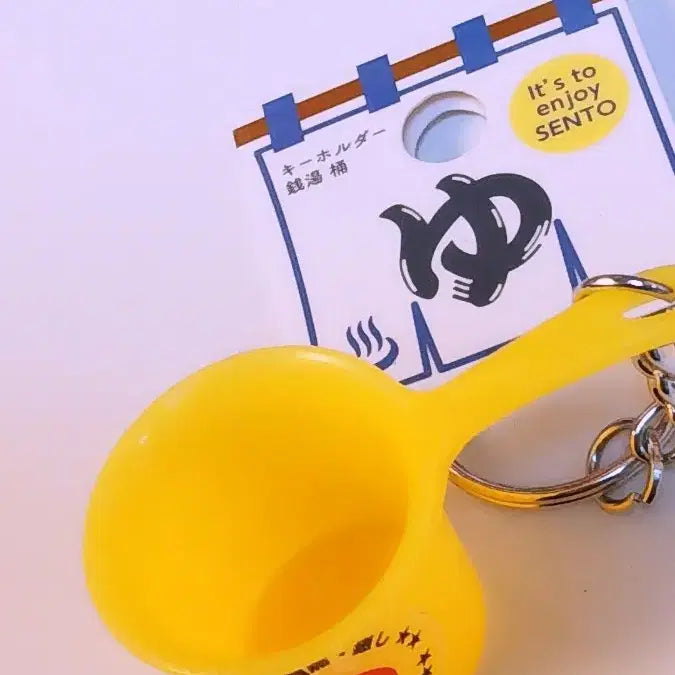 This Japanese miniature Onsen Sento key holder is a charming accessory. It features a cute yellow "sento" ladle. This key holder is perfect for adding a unique touch to your keys or bag.