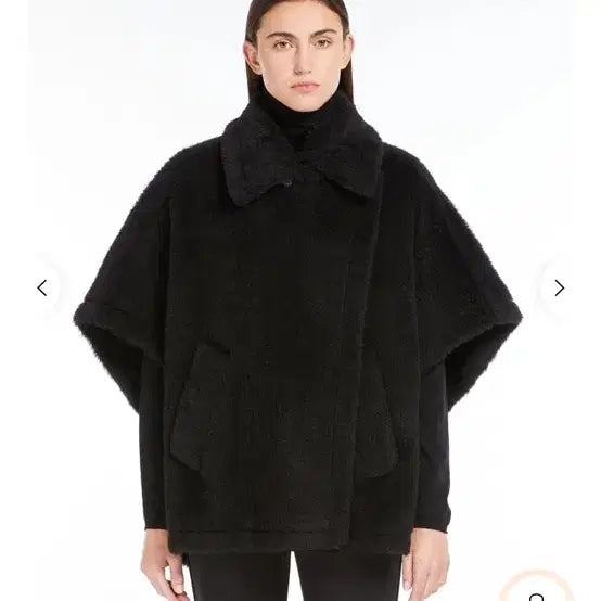 The Max Mara Teddy Cape in black. This cape features a stylish design.