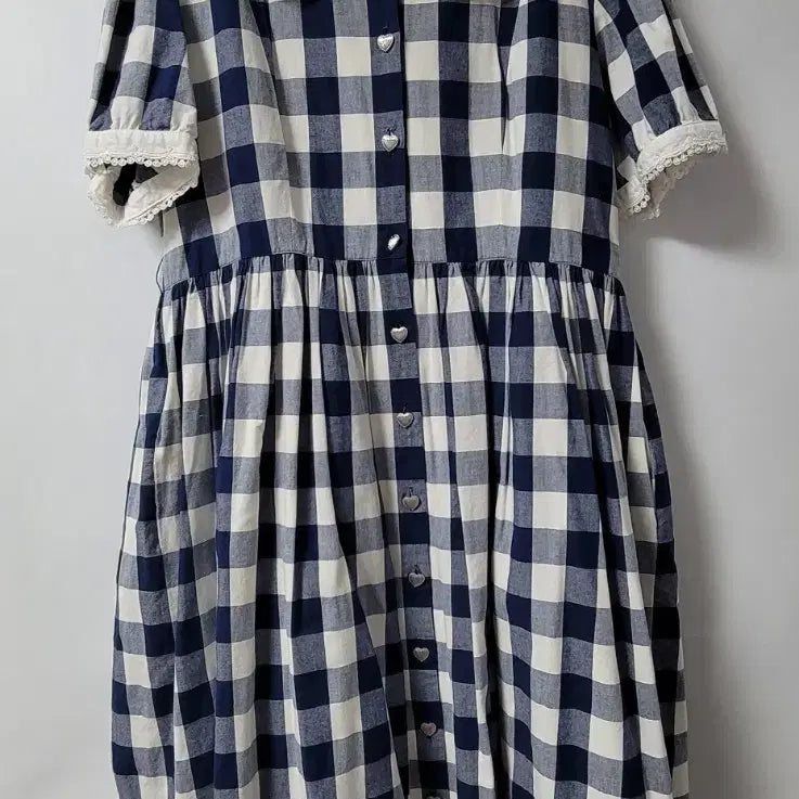 [BUNJANG] Merrybell Flower Gingham Navy Short Sleeve Blouse / 메리벨 플라워 깅엄 네이비 반팔