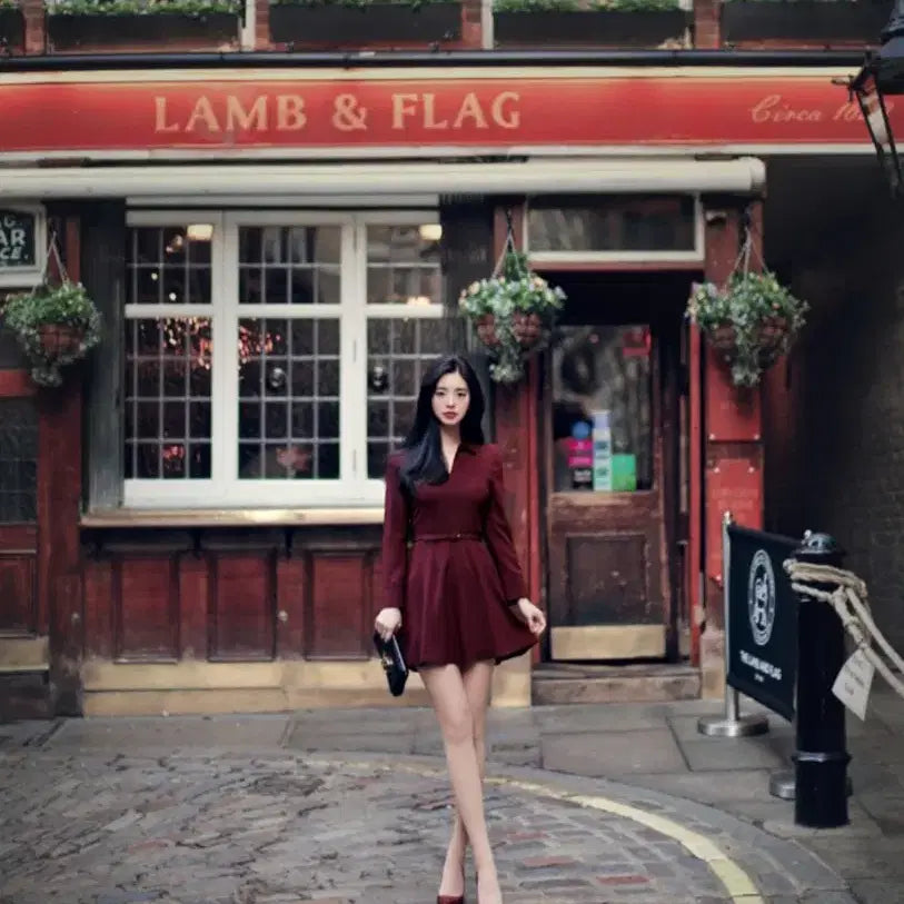 * **Dress 4:** Burgundy color, small size, approximately 82cm in length. Made with polyester. New with tags.