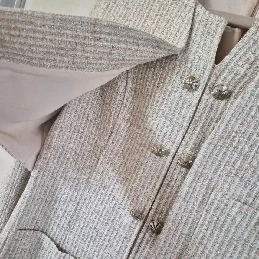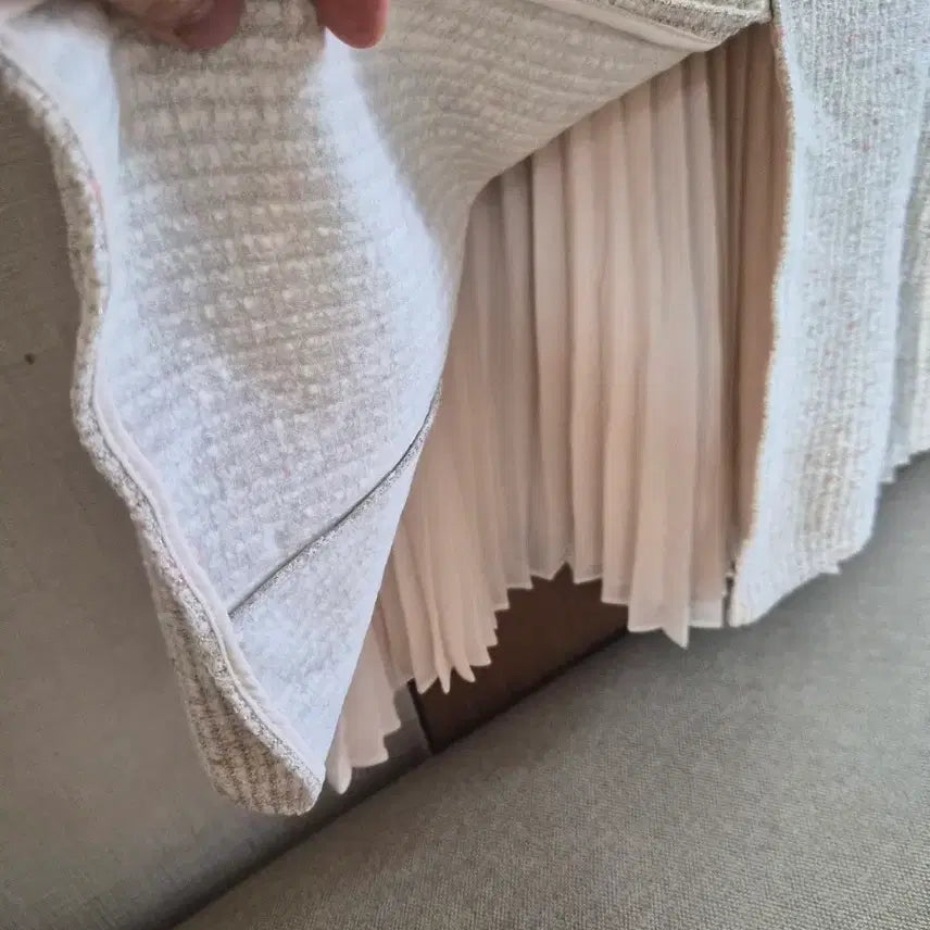 자켓을 입은것처럼 연출되는 트위드원피스입니다 밑단쉬폰프릴이