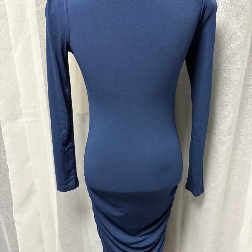 쫀쫀한 네이비 슬리브 셔링 원피스입니다. 바디라인을 예쁘게 잡아줘서 날씬해보여요. 셔링 디테일이 있어서 고급스럽고, 데이트룩으로도 좋아요. 별도 문의 없으시면 바로 안전결제 부탁드려요!
