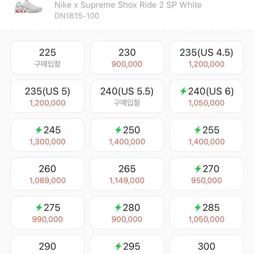 [BUNJANG] Nike x Supreme Shox Ride 2 SP White Sneakers / 나이키 x 슈프림 샥스 라이드 2 SP 화이트