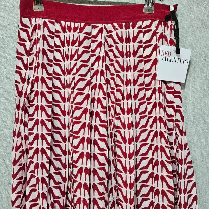 레드 발렌티노 플리츠 미디 스커트입니다. 레드&화이트 색상의 신발 패턴이 포인트예요. 택 달린 새 상품으로, 사이즈는 사진을 참고해주세요! 문의 없으시면 바로 안전결제해주시면 됩니다