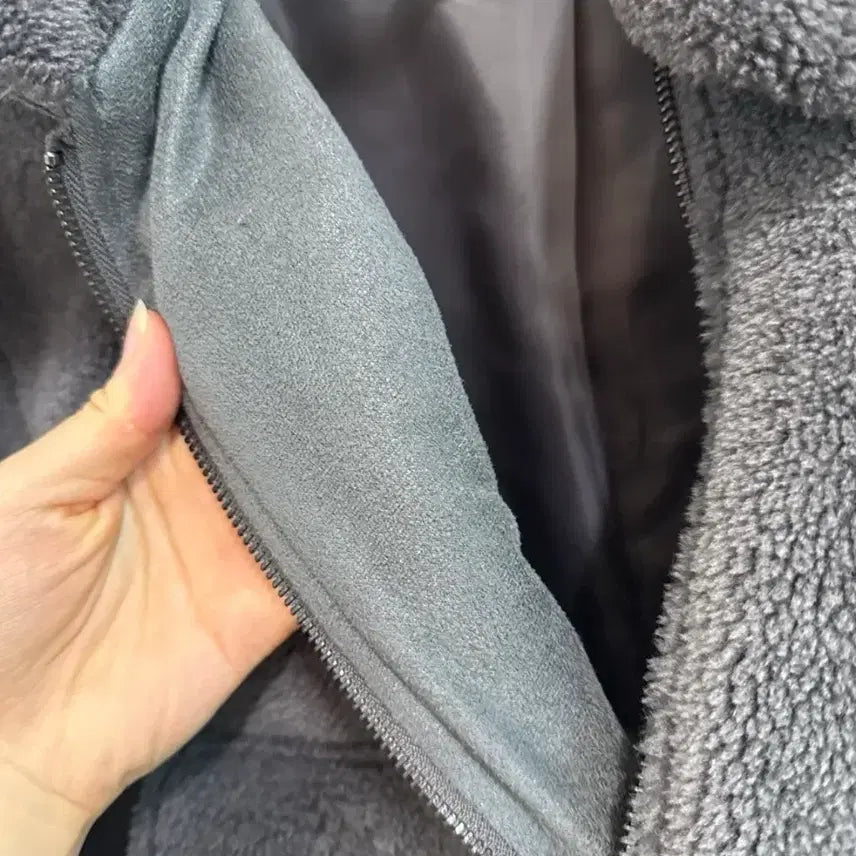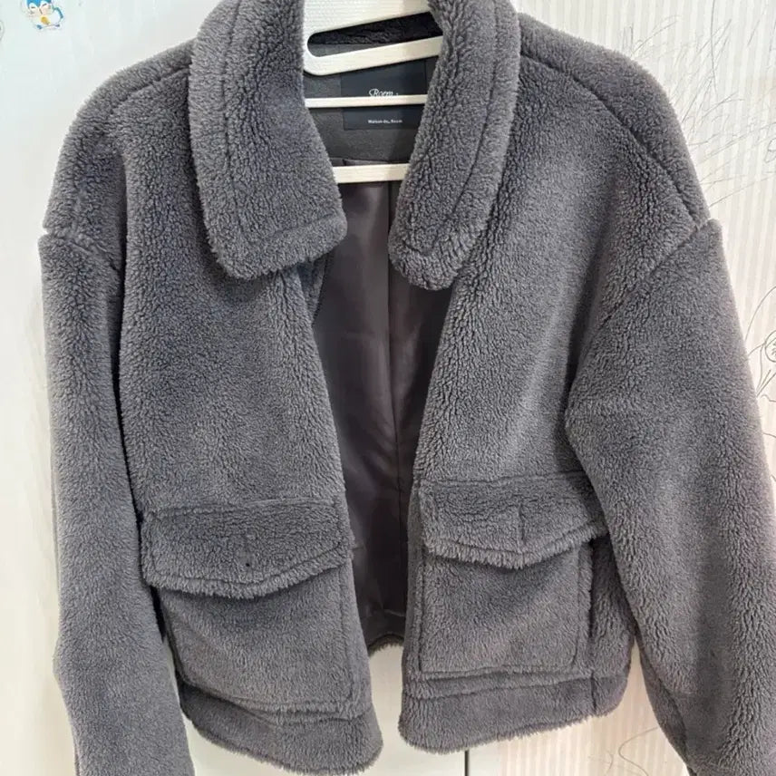 로엠 뽀글이 퍼 자켓입니다. 넉넉한 핏으로 귀엽게 코디하기 좋습니다. 숏자켓이라 다리가 길어보이는 효과까지 있어요! 차콜그레이 색이고 4번 입었습니다!