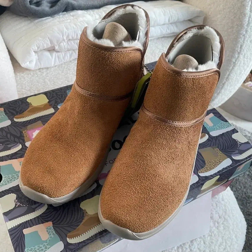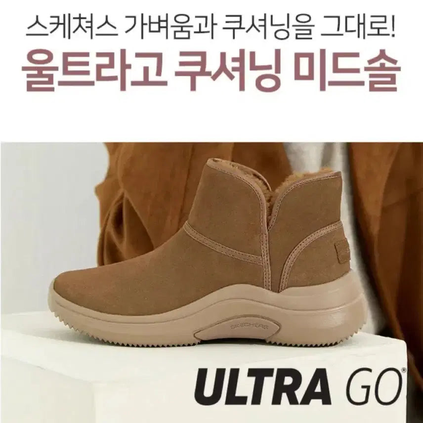 Brand new Skechers On The Go Midtown leather ankle boots. Features a stylish design with a bright brown color, size 245. These boots are not the typical ankle boots, offering a more refined look. They are designed for comfort with a warm, fur-lined interior.