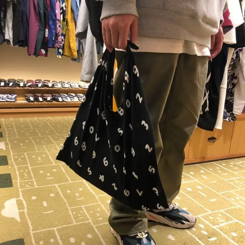 검정색 바탕에 흰색 숫자 패턴이 독특하고 귀여워요. 가볍고 편하게 들고 다니기 좋은 토트백입니다. 별도 문의 없으시면 바로 안전결제 부탁드려요!