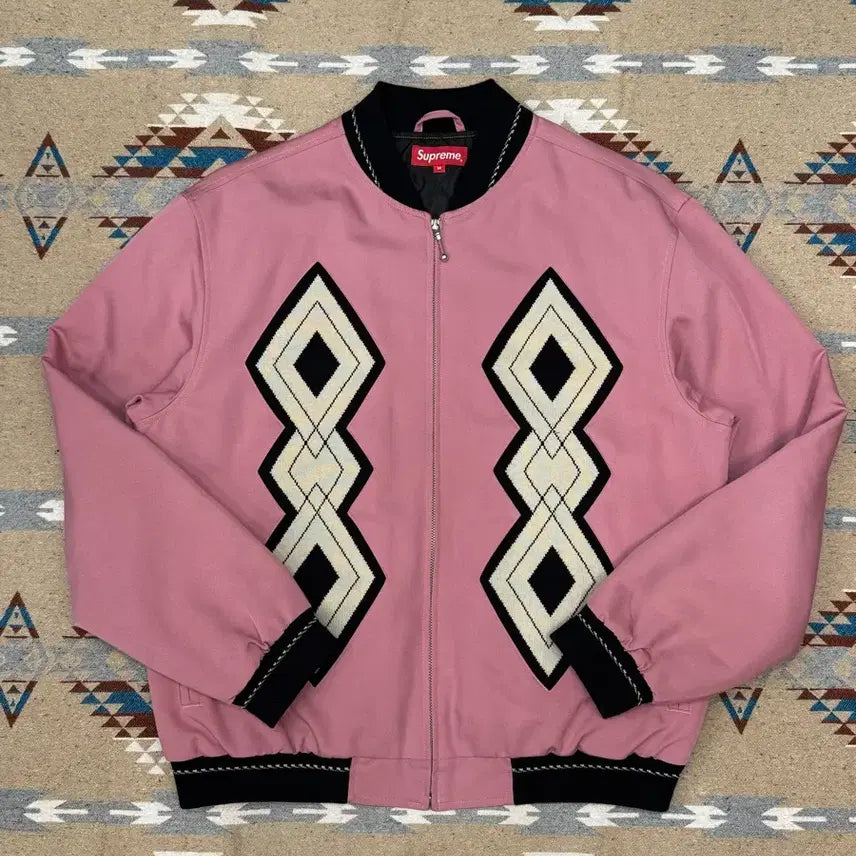 [BUNJANG] Supreme Diamond Rayon Bomber Jacket Dusty Pink (Size M) / [M] 슈프림 다이아몬드 레이온 봄버 더스티 핑크