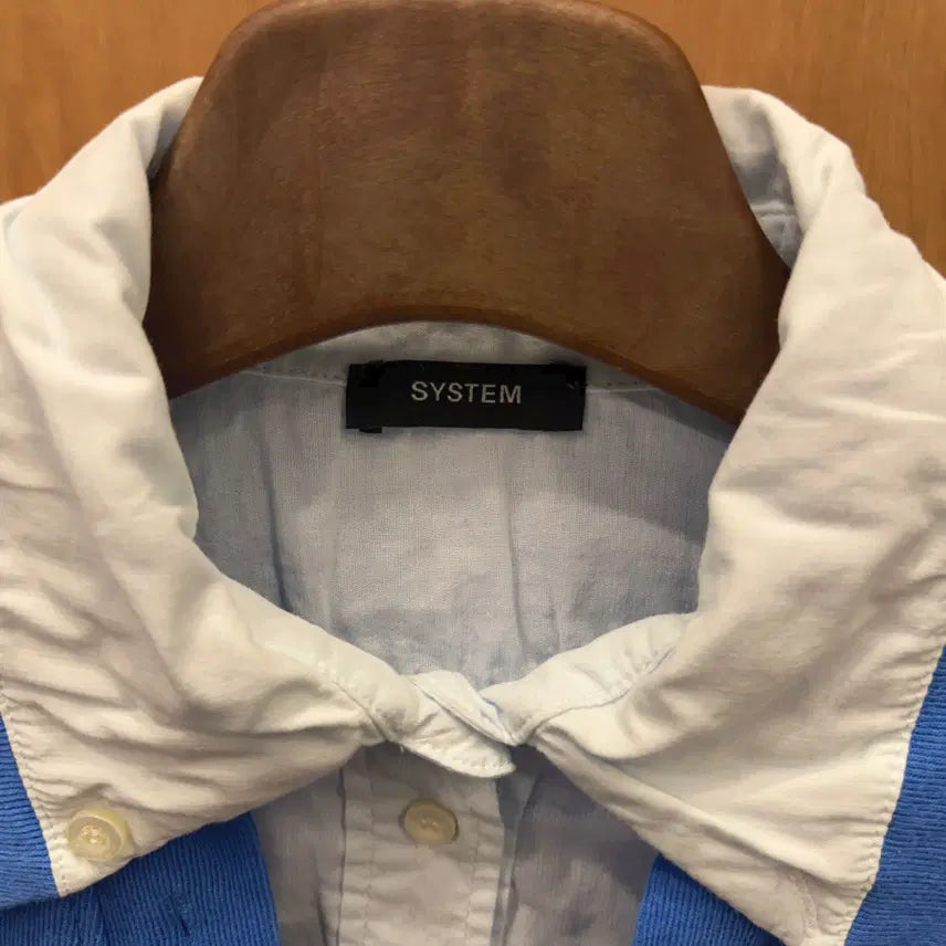 [BUNJANG] System Layered Lettering Embroidered Single Pocket Shirt / 시스템 셔츠 레이어드 맨투맨 레터링 자수 싱글 포켓 카라넥 디테일 블루