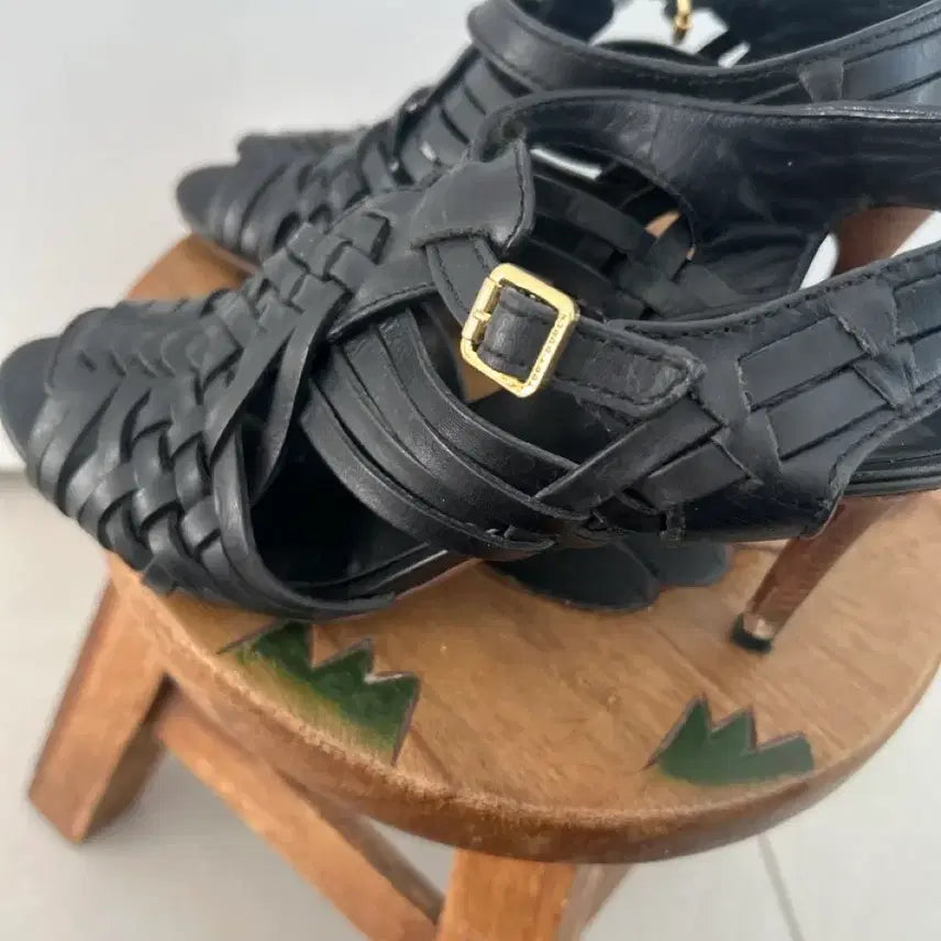 [BUNJANG] Tory Burch Woven Strap Leather Sandals / 토리버치 가죽 샌들 블랙 우븐 스트랩