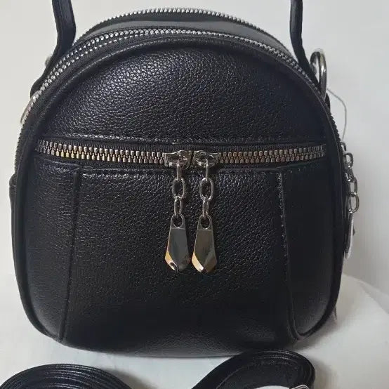 블랙 색상의 동글동글한 크로스,토트빽