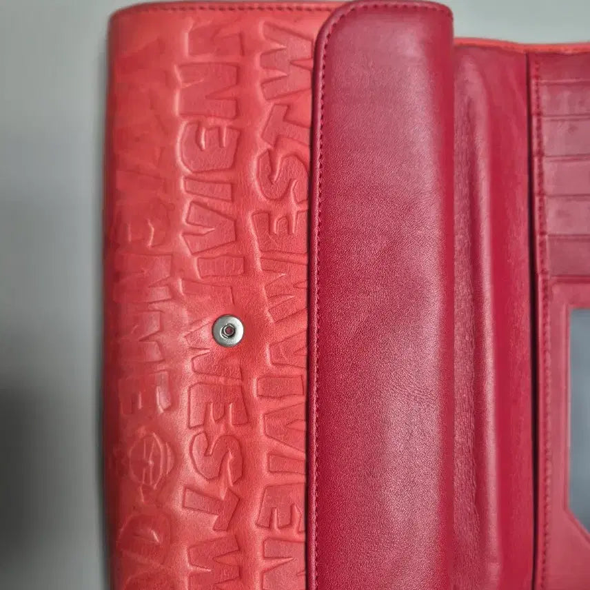 This is a genuine Italian mainline leather with superior quality. I've included a photo of the leather engraving, so you can purchase with confidence. It's a long wallet so it has great storage capacity and the red color is strong so it's the best as a point item!