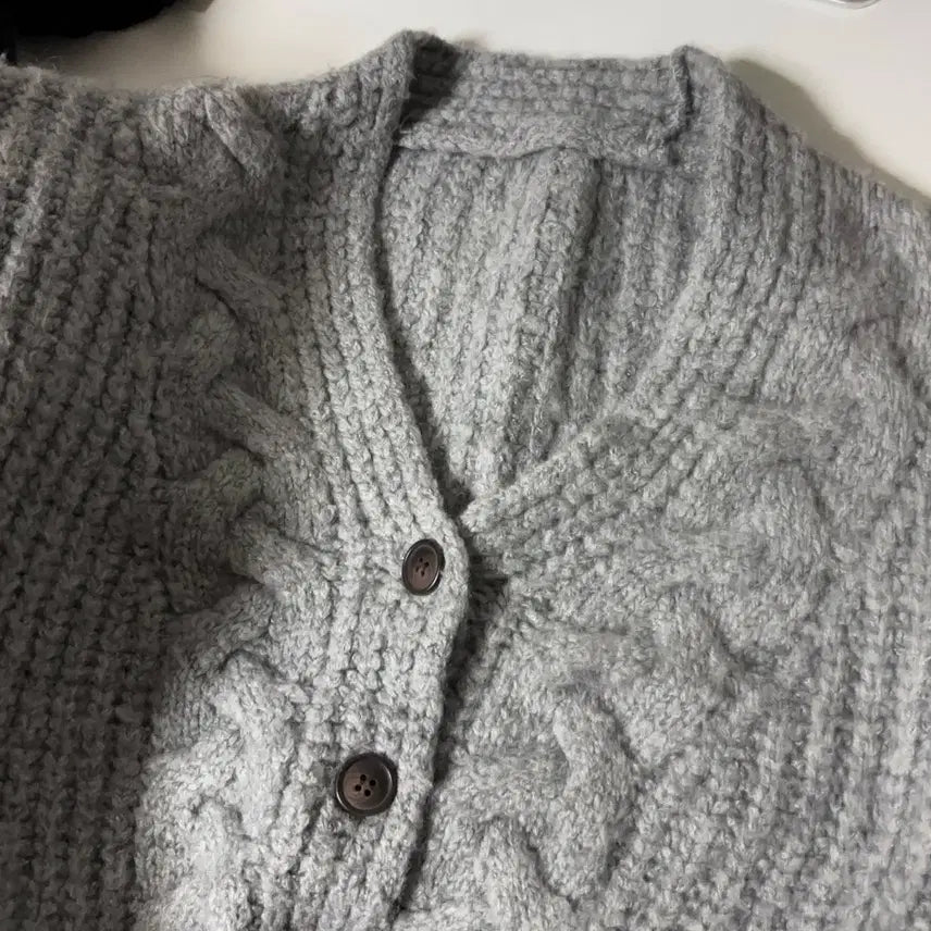 This gray knit cardigan is slightly darker than the first photo, making it a versatile piece for everyday wear.