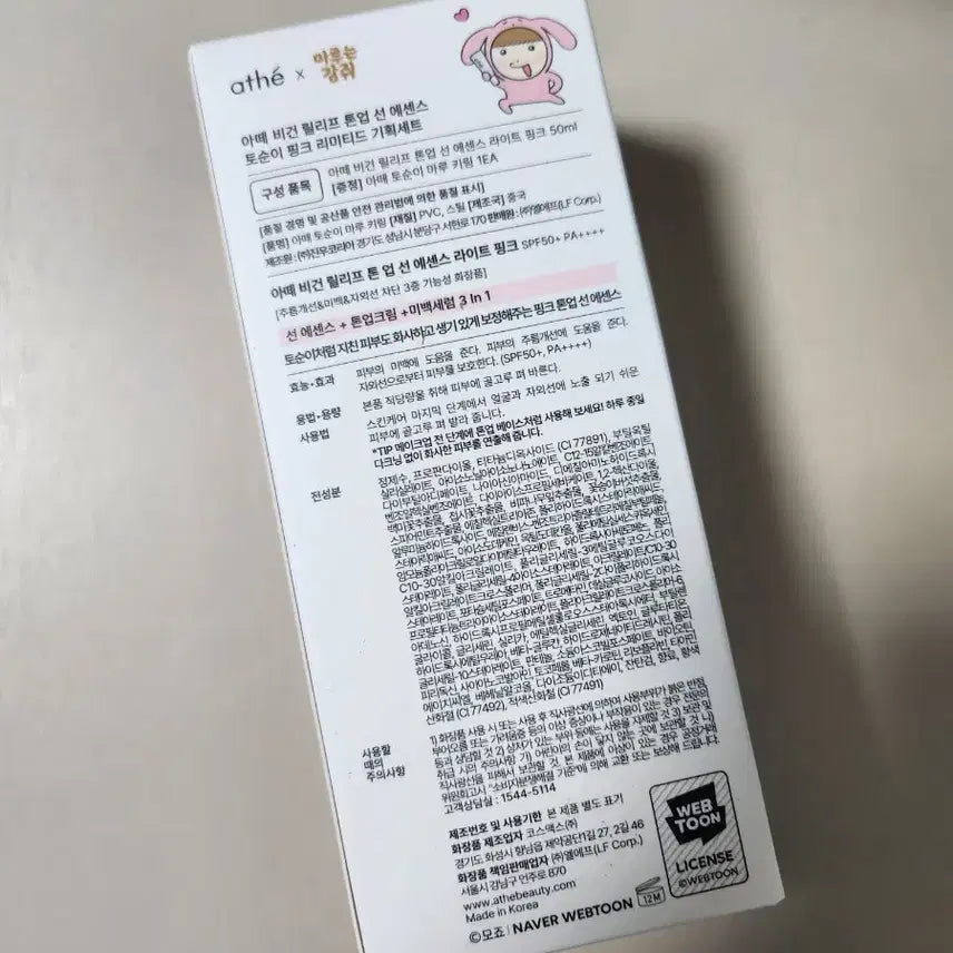 비건 릴리프 톤업 선 에센스 라이트 핑크 50ml