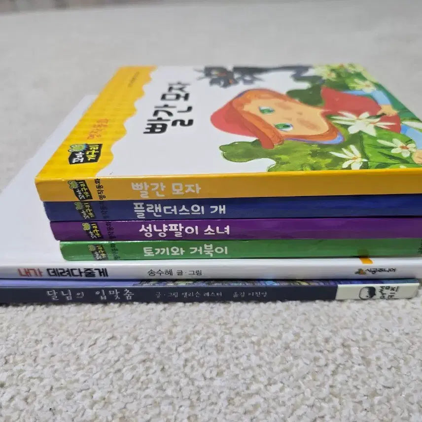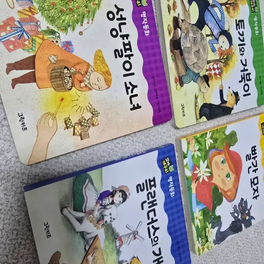 아이들에게 좋은 동화인 명작, 전래 동화책입니다. 성냥팔이 소녀, 빨간모자, 토끼와 거북이 . 플랜더스의 개 등이 있어요