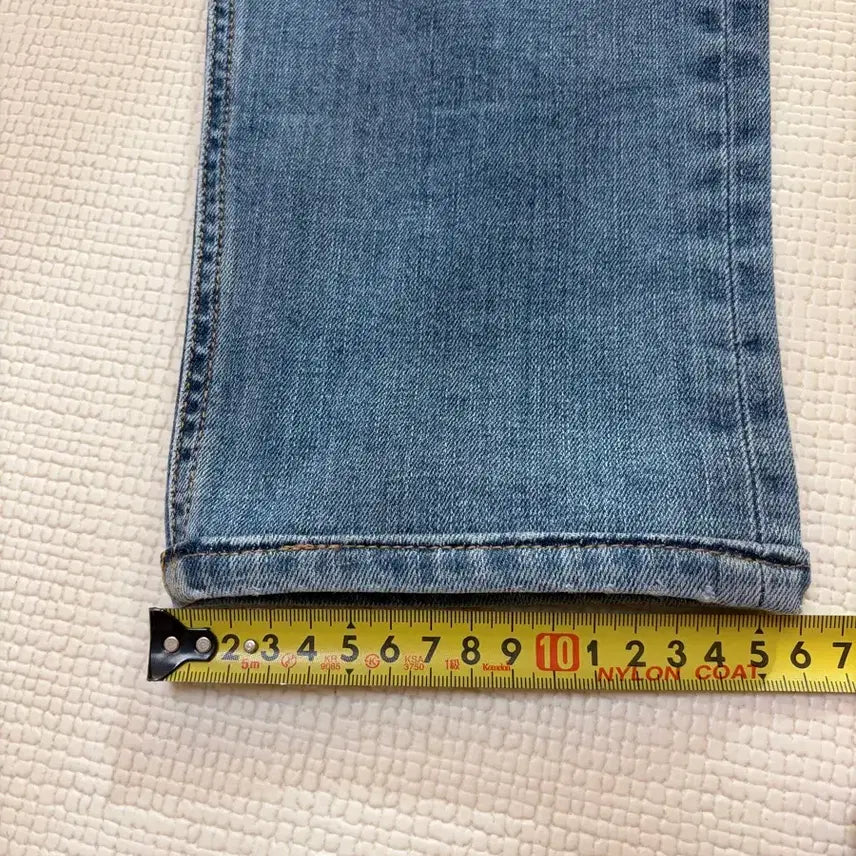 엘라 2% 정도 들어간 스판데님 이며 기장 수선 되어있습니다 실외 미착 상품입니다