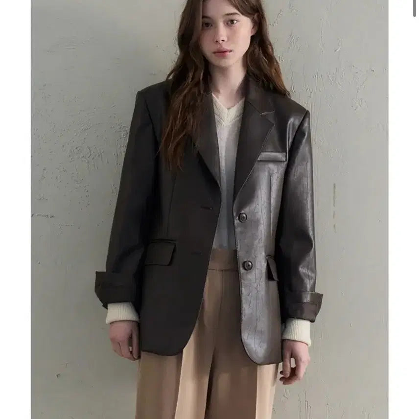 ✔️드로우핏 우먼 레더 오버핏 싱글 블레이저 M사이즈