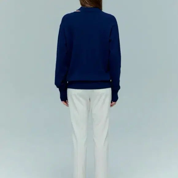 하시에 슬릿 트임 디테일 니트 풀오버 네이비 S 사이즈