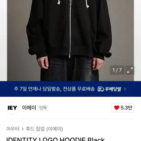 무난한 블랙 색상에 로고 포인트 있는 후드집업입니다