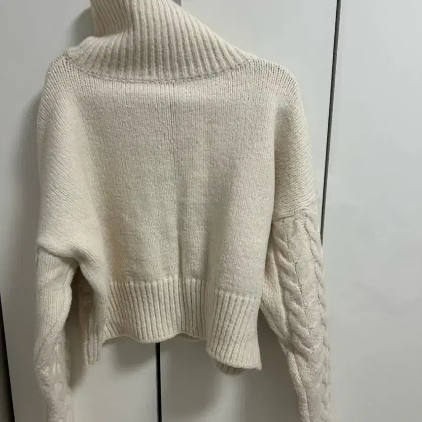 [BUNJANG] Ivory Cable Knit Zip-Up Sweater / 아이보리 꽈배기 니트 집업