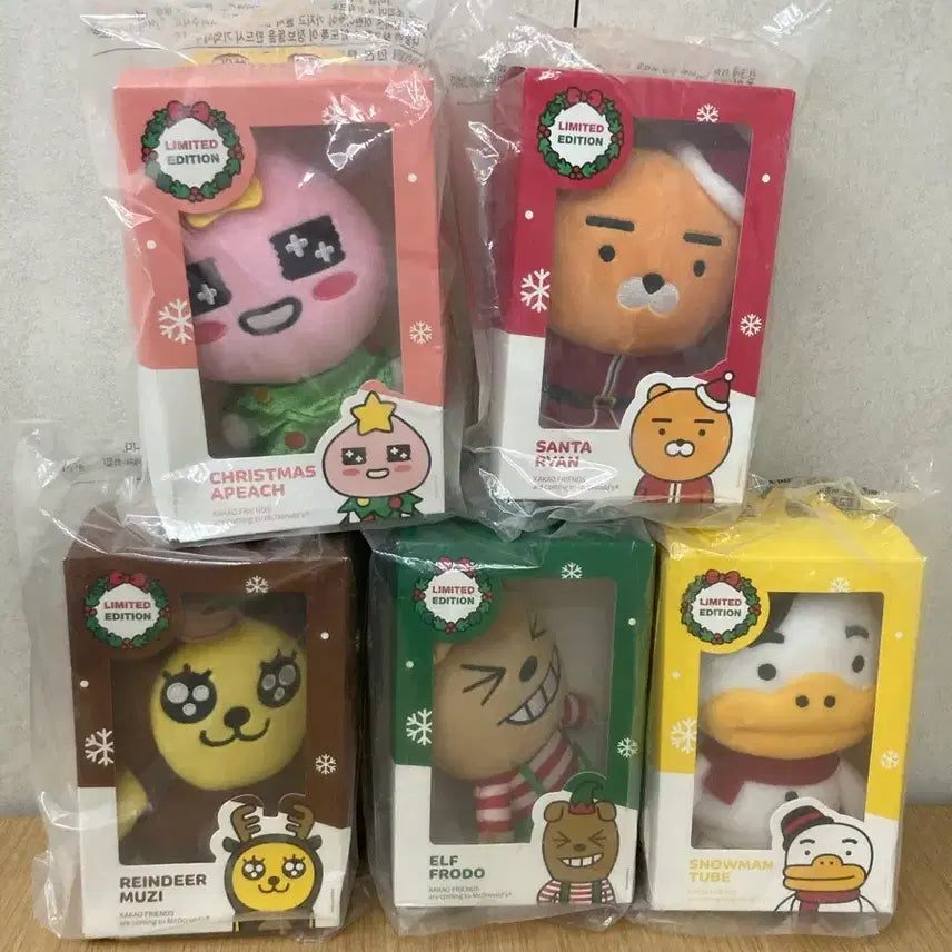 A complete, sealed set of the McDonald's Kakao Friends Christmas Edition dolls.