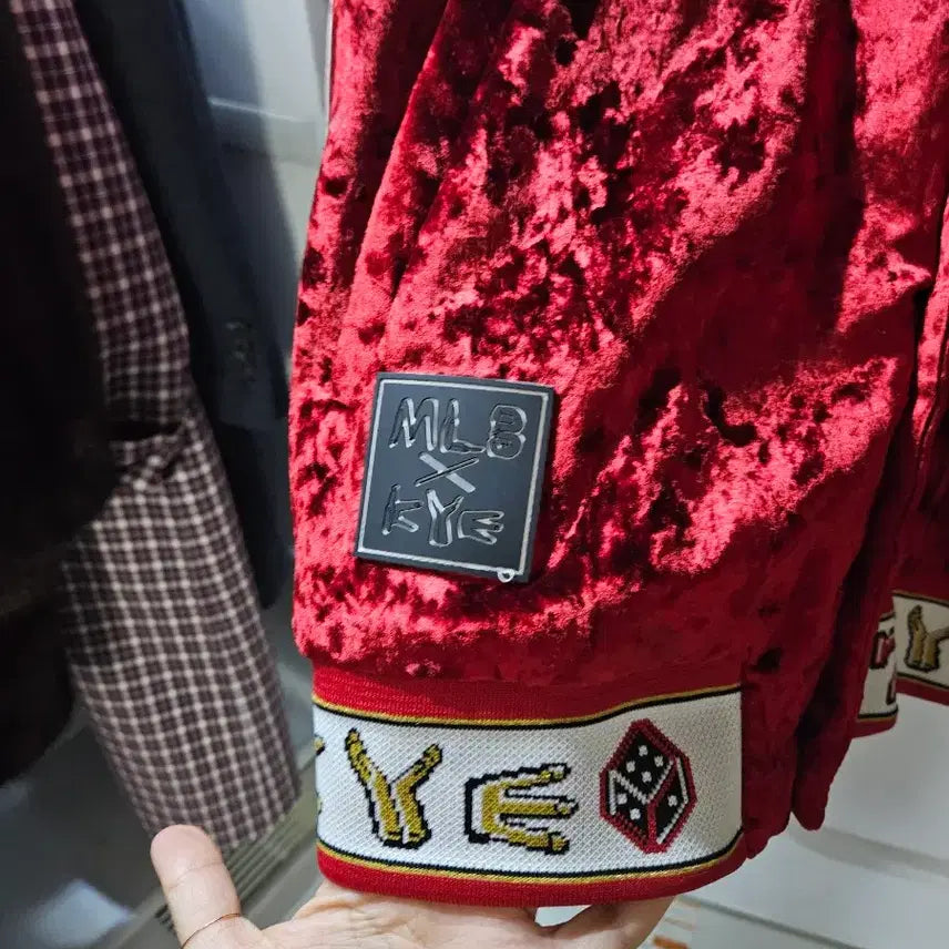MLB kye 콜라보 벨벳 소재 점퍼입니다. 버건디 색상에 LA 로고가 고급스럽게 박혀있습니다. 소매와 밑단 디테일도 유니크하고 예뻐요. 문의 없으시면 바로 안전결제해주시면 됩니다!