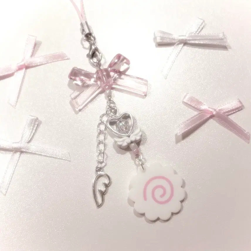Handmade Narutomaki beaded keyring with Angelcore and Y2K elements for a cute aesthetic. Each handmade beaded keyring is available while supplies last. Slight design variations may occur depending on the beads available for restocks.