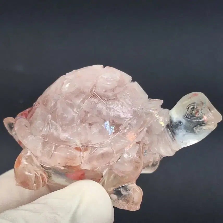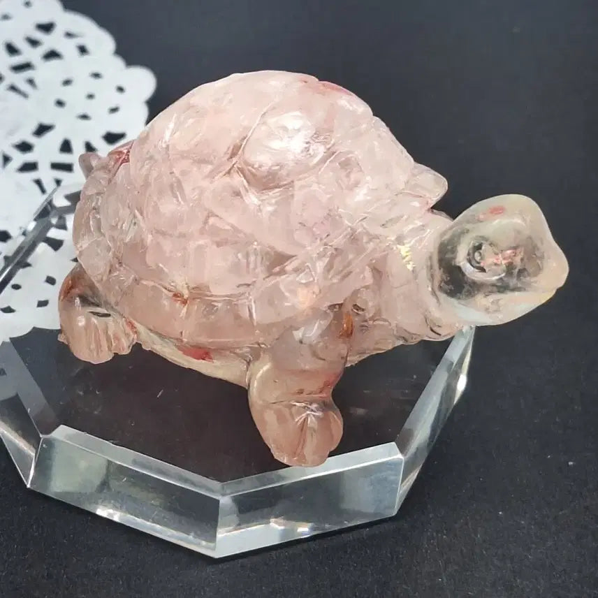 로즈쿼츠로 만들어진 거북이 조각입니다. 은은한 핑크빛이 감도는 게 특징입니다. 집에 두면 무병장수와 부를 가져다준다고 하네요. 문의 없으시면 바로 안전결제해주시면 됩니다!