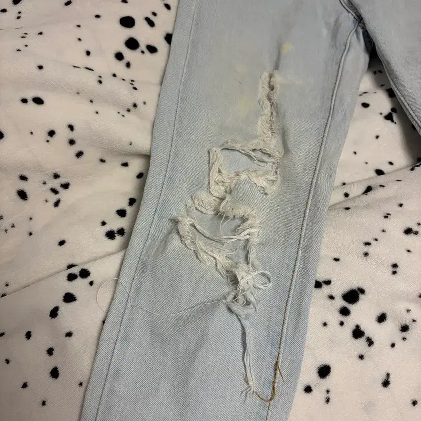 연청 색상의 데미지 스키니진입니다. 군데군데 데미지 디테일이 들어가 있어서 트렌디하게 코디하기 좋아요. Y2K 패션 좋아하시는 분들께 추천드려요! 문의 없으시면 바로 안전결제해주시면 됩니다!