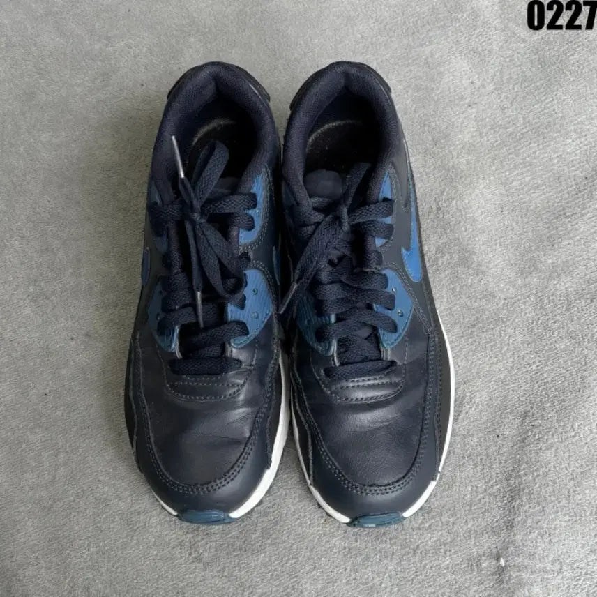 나이키 에어맥스90 네이비/블루 컬러 스니커즈입니다. 신발 바깥쪽에 에어맥스 로고가 파란색으로 포인트 되어 있습니다. 사용감 있는 제품이니 감안하고 구매 부탁드려요. 별도 문의 없으시면 바로 안전결제 부탁드려요!