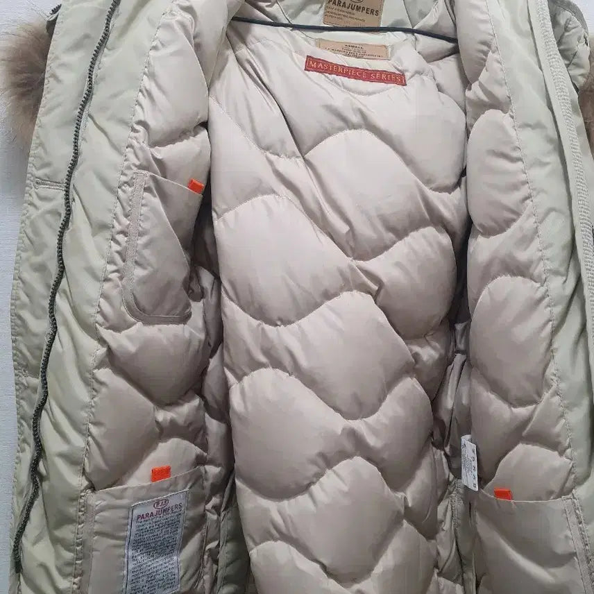 This is a Parajumpers women's padded jacket in ivory, size XS. The fur on the hood is luxurious and voluminous. Selling in good condition at a low price! If you have any questions, please contact us via secure payment.