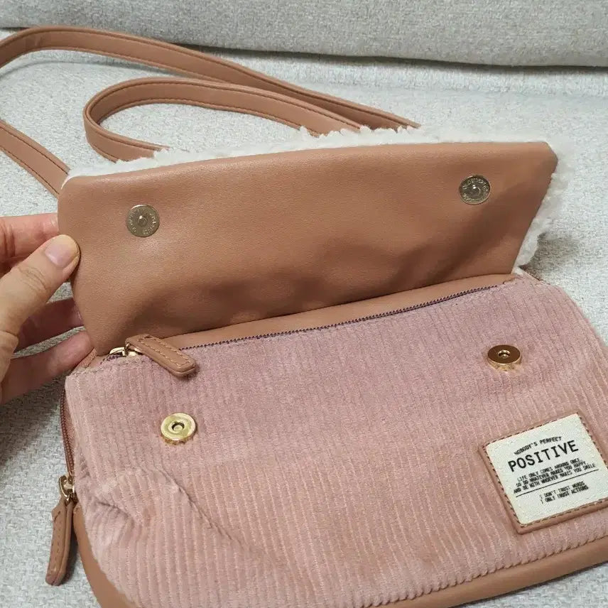 [BUNJANG] Pink Corduroy Crossbody Bag / 핑크 코듀로이 뽀글이 크로스백
