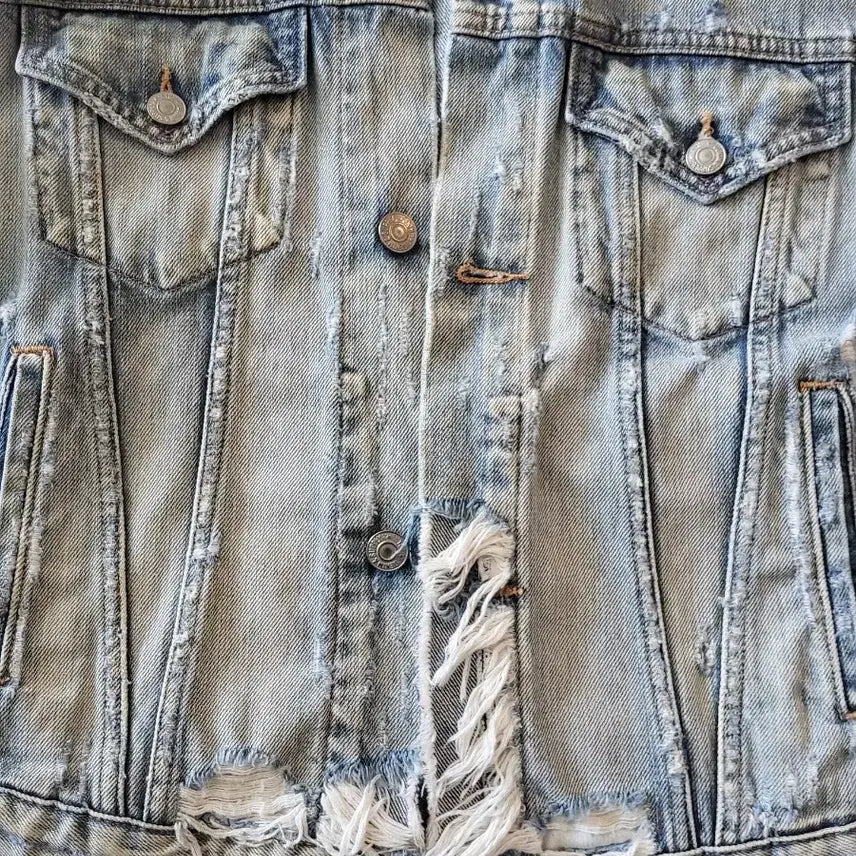 Vintage Polo Denim jacket with a distressed style. It's perfect for creating a stylish look.