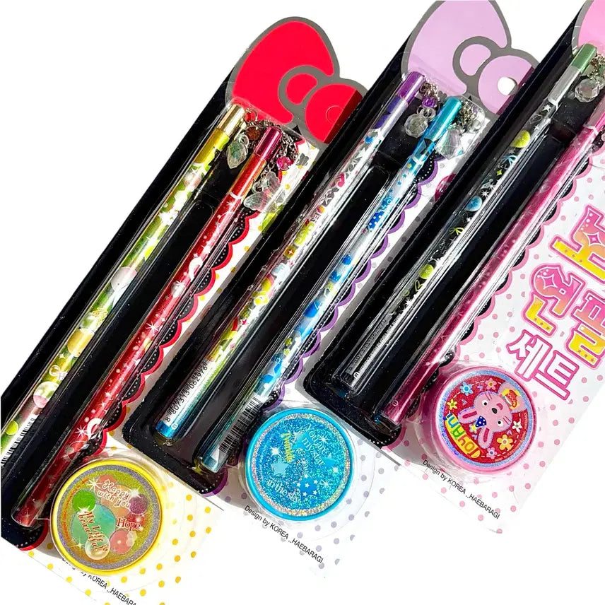 New Item. Approximately 10 x 25cm. This set, released in 2010, captures the nostalgic feel of old stationery stores. Includes a pencil and sharpener set with a keyring attached to the pencil for a kitsch look. The set includes two pencils and a sharpener. Choose from three designs. Please note that as a vintage item, there may be signs of age. We recommend that only those familiar with vintage items purchase.