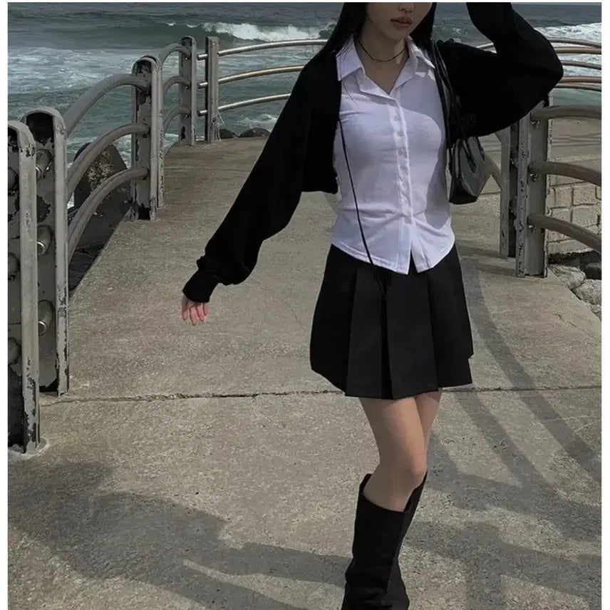 [BUNJANG] Ring Ring Bolero Cardigan (Black) / 에이블리 링링 스트랩 볼레로 가디건 블랙 블랙 FREE