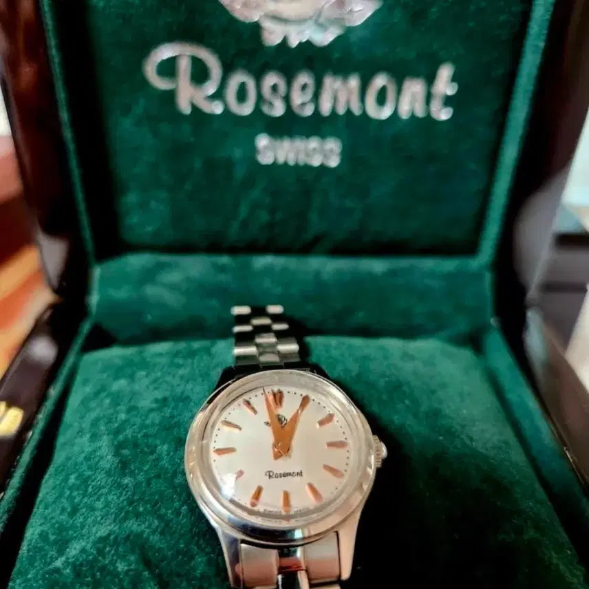 Luxurious Swiss-made Rosemont women's metal watch. Purchased less than a month ago and is in pristine condition. Includes the original case, warranty, and an extra watch strap. There are no scratches or damage, and the protective film is still on the watch face. Get a genuine Rosemont watch at a great price.