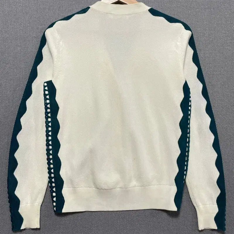 Used Tory Burch Gabriel Cardigan. Features some discoloration on both sleeves.