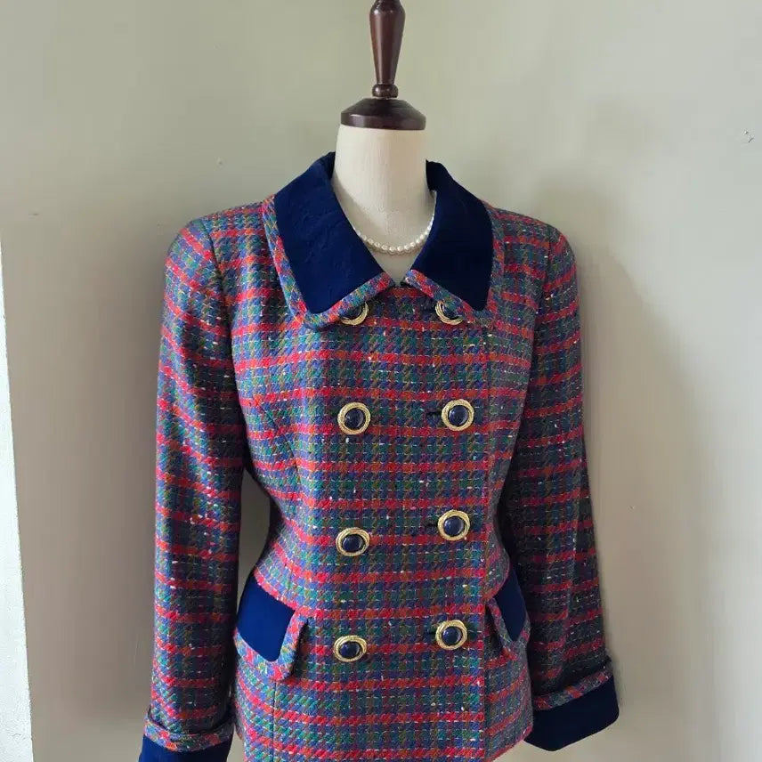 [BUNJANG] Tweed Jacket with Velvet Color Block / 벨벳 배색 카라 보카시 체크 트위드 자켓