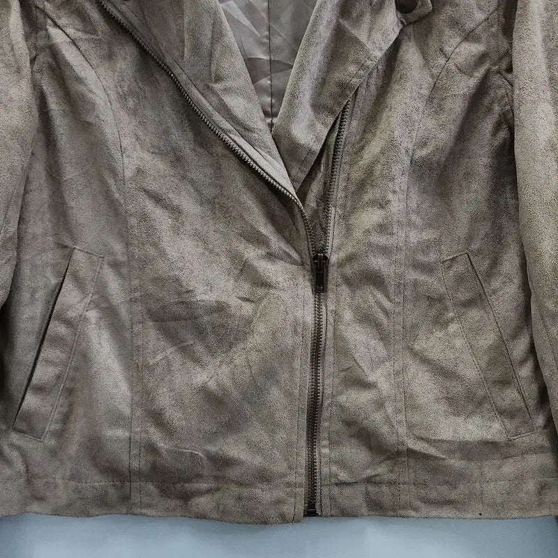 This vintage rider jacket features a beautiful suede texture and a bohemian aesthetic.