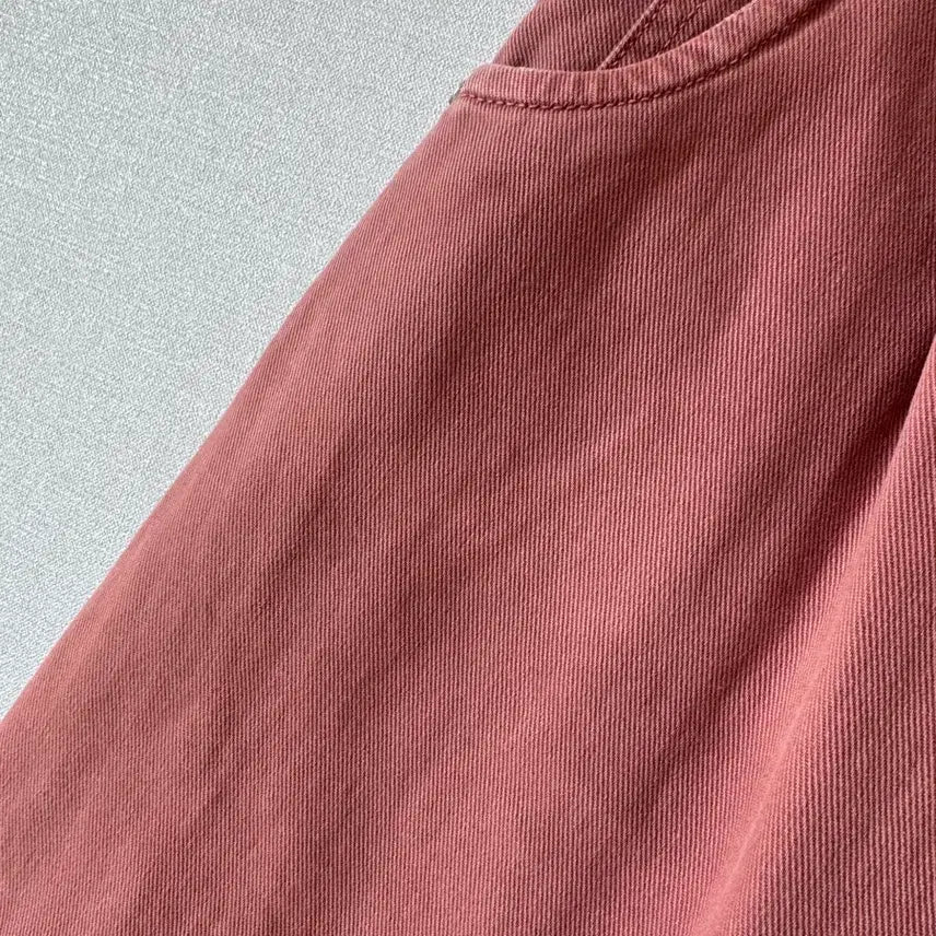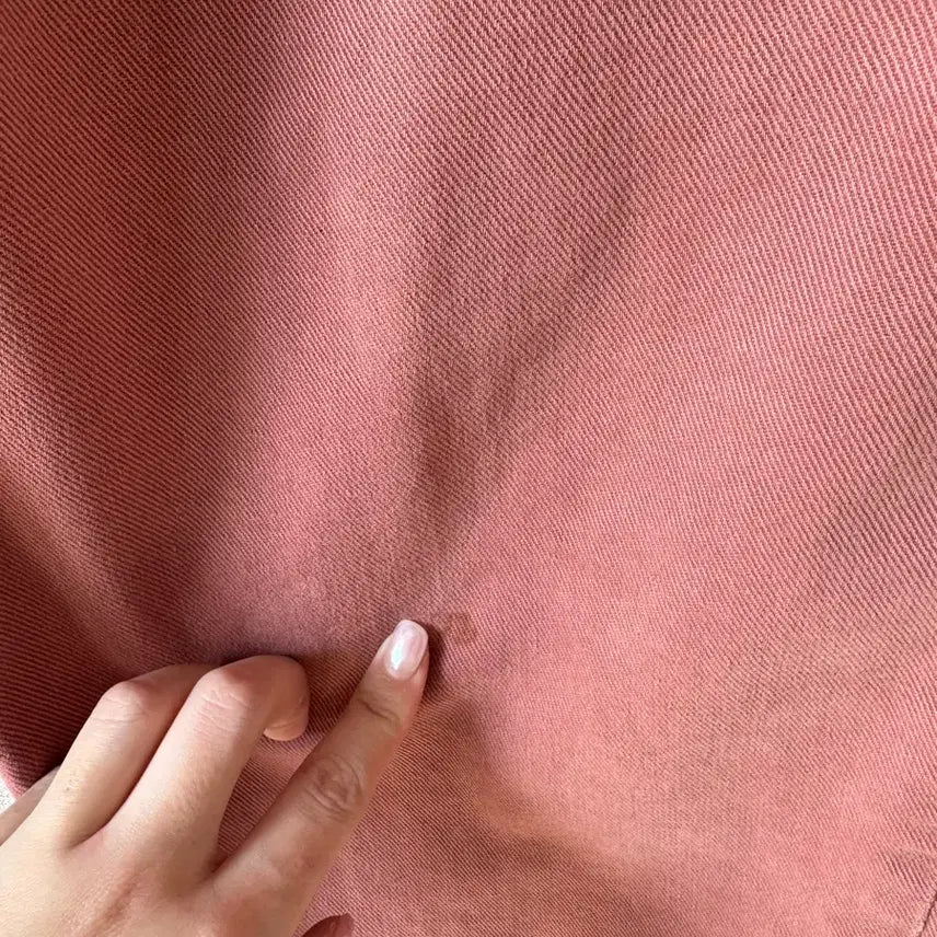 Gently used ZARA wide-leg denim pants in a coral pink color. There is a slight coffee stain, reflected in the reduced price.